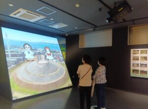 また、大スクリーンでは、たるみ観光大使の「ごしきまろ」と「たるみこ」が古墳づくりを解説してくれるシアターも。